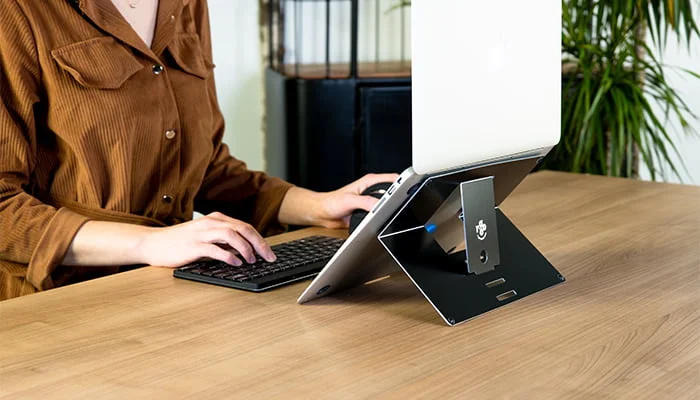 Support pour ordinateur portable R-Go Riser Attachable, attaché à votre ordinateur portable, 4 positions, noir