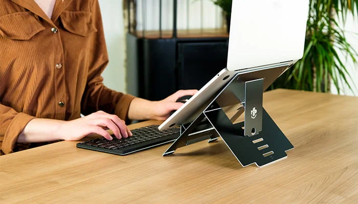 Ce support pour ordinateur portable est facilement réglable en 5 hauteurs. Ainsi, vous travaillez toujours à hauteur des yeux et vous évitez les postures courbées et les maux de cou et de dos. Très confortable pour une utilisation au bureau, à la maison ou en déplacement. Il place votre tête dans une position naturelle et réduit la tension dans les muscles de votre cou et de vos épaules.